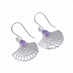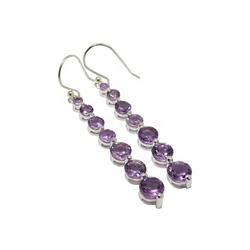 Handmade 925 Sterling Silver Drop Earrings Genuine Amethyst Gemstone Beautiful Vintage Wedding Jewelry for Parties and Gifts