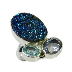 แหวนเงินแท้ 925 แหวนท็อปอาซสีน้ําเงินแท้ 925 ดีไซน์แฮนด์เมดแหวนเงิน